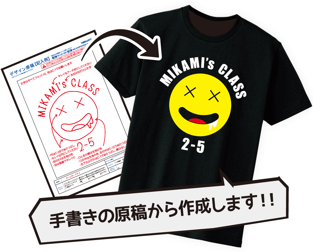 サードアイは工場直営のオリジナルプリントTシャツ専門店です。クラスTシャツから店舗用スタッフTシャツまで、幅広いお客様のオリジナルプリントTシャツの制作をサポートいたします。